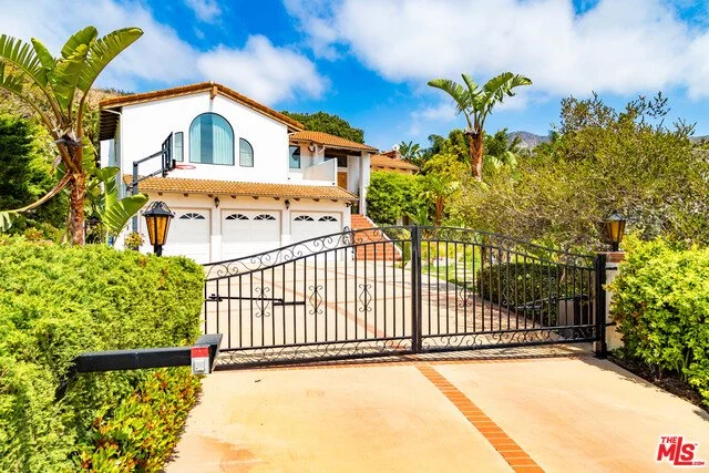 Enjoy white water views of world famous surf-rider beach from this Contemporary Mediterranean in the Malibu Country Estates. Excellent central Malibu location on a quiet cul-de-sac street. Features include a gated entry, high ceilings , five spacious bedrooms (including 2 master suites), a cooks kitchen with stainless steel appliances, formal dining room, Bonus room, three fireplaces, and a three car garage. Nice private yard with beautiful garden and variety of fruit trees. Superb Malibu neighborhood with street lights, sidewalks and SEWER system, adjacent to Pepperdine University with Crest Club membership for a fee, with pool, lighted tennis courts, track and more.