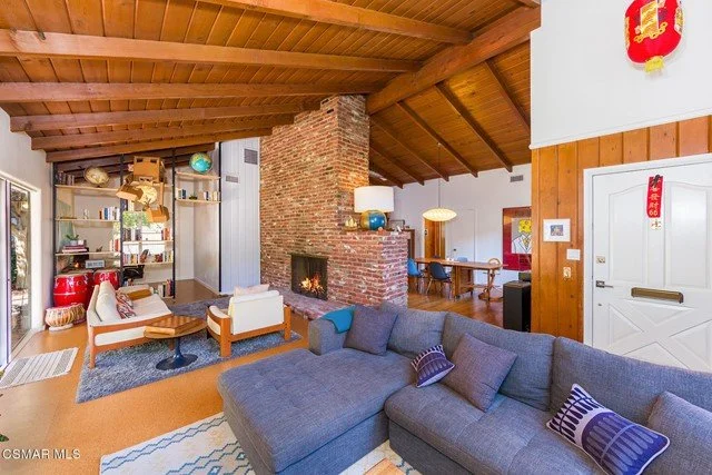 Architectural 50's ranch home with open concept floor plan and soaring vaulted ceilings. Light and bright with green views from every window. Unique centerpiece woodburning fireplace, perfect for the holidays! The updated kitchen features quartz countertops, a new and ultra-quite Bosch dishwasher and a vintage Wedgewood stove in exquisite condition. The large dining room and covered patio provide ample space for entertaining and the fully-fenced and landscaped backyard is on display from your living room and ready for kids and pets. In the yard you'll also find two sprinkler/drip systems serving front and back and a custom organic raised garden bed with irrigation. New central heating, cooling and all ventilation. New eco-friendly cork flooring throughout the living room and den. Plenty of space in the laundry room to accommodate a second bath. Spacious 2 car garage with built in shelving and workbench suited for a craftsperson or hobbyist. Easy layout for building up or out the back and plenty of space for a pool. Walk to award winning Woodland Hills Charter Elementary, cafes and restaurants. Peaceful and quiet neighborhood that let's you get away from it all while still being only a 5 minute drive to Whole Foods, Trader Joes, Calabasas Commons, Warner Center and just 20 minutes to Topanga Beach